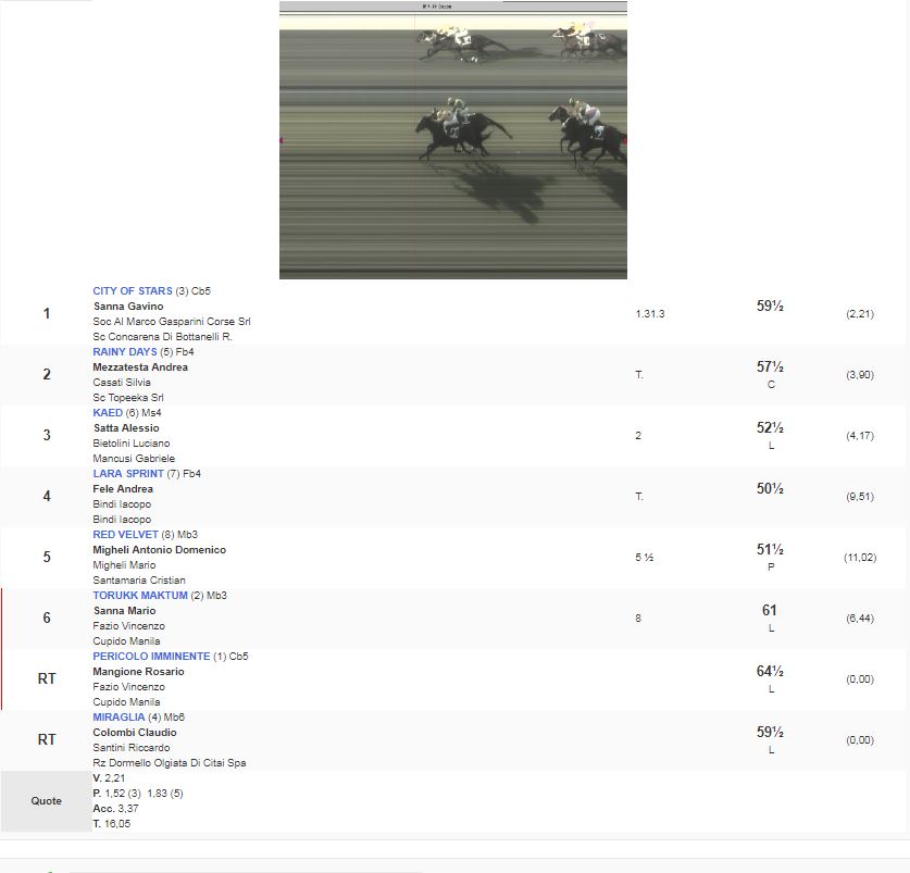 4^ Corsa Premio Crapom vinta da City of Stars