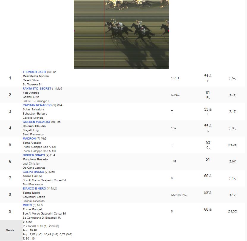 5^ Corsa Premio Tornado vinta da Thunder Light