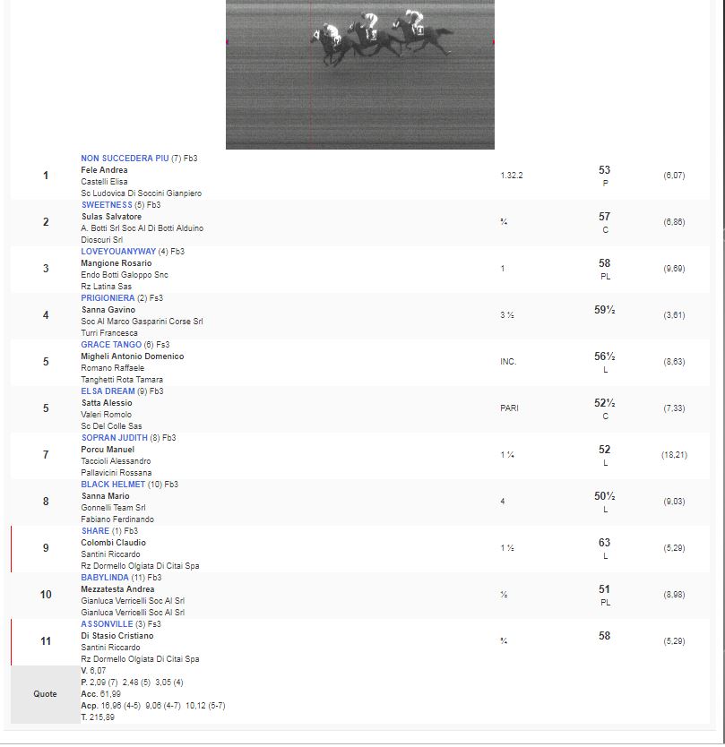 6^ Corsa Premio Azzurrina vinta da Non Succederà Più