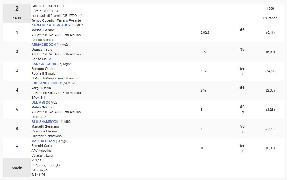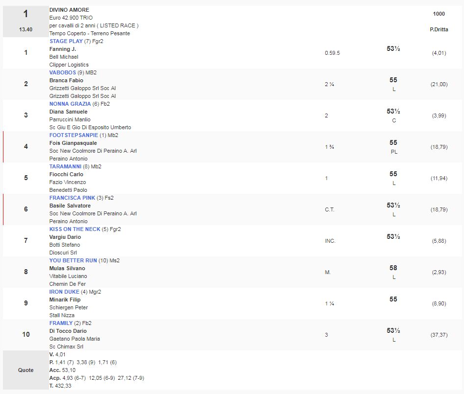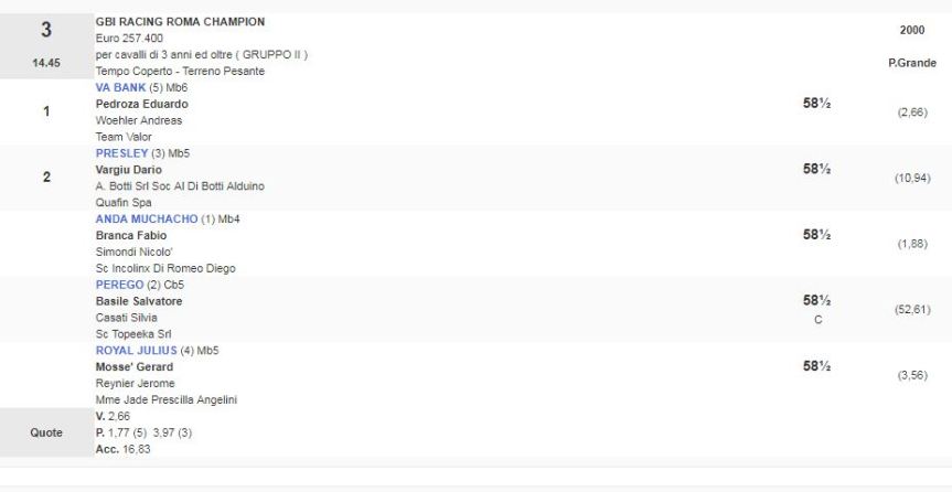 Ippica, Roma: 04 /11 Risultati 1^, 2^ 3^ Corsa, Vincono Stage Play, Atom Heart Mother e Va Bank 1^ Corsa, Premio Divino Amore vinta da Stage Play 2^ Corsa Premio Guido Berardelli vinta da Atom Hearth Mother 3^ Corsa Premio GBI Racing Roma Champion vinta da Va Bank Condividi sul web: Condividi su Facebook (Si apre in una nuova finestra) Facebook Condividi su WhatsApp (Si apre in una nuova finestra) WhatsApp Condividi su Telegram (Si apre in una nuova finestra) Telegram Condividi su X (Si apre in una nuova finestra) X Stampa (Si apre in una nuova finestra) Stampa Invia un link a un amico via e-mail (Si apre in una nuova finestra) E-mail Mi piace Caricamento... Correlati