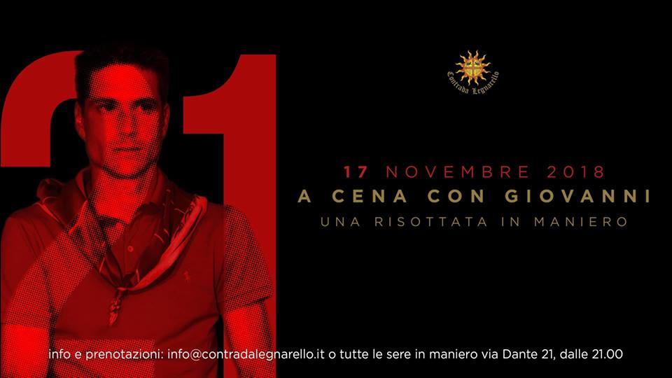 Per adesione rivolgersi in Maniero tutte le sere da Lunedì a Venerdì dalle ore 21.00 oppure scrivere all’indirizzo info@contradalegnarello.it entro Lunedì 12 Novembre 2018 comunicando se si desidera il menù vegetariano e il numero di bambini fino a 13 anni per cui si desidera il menù dedicato.
