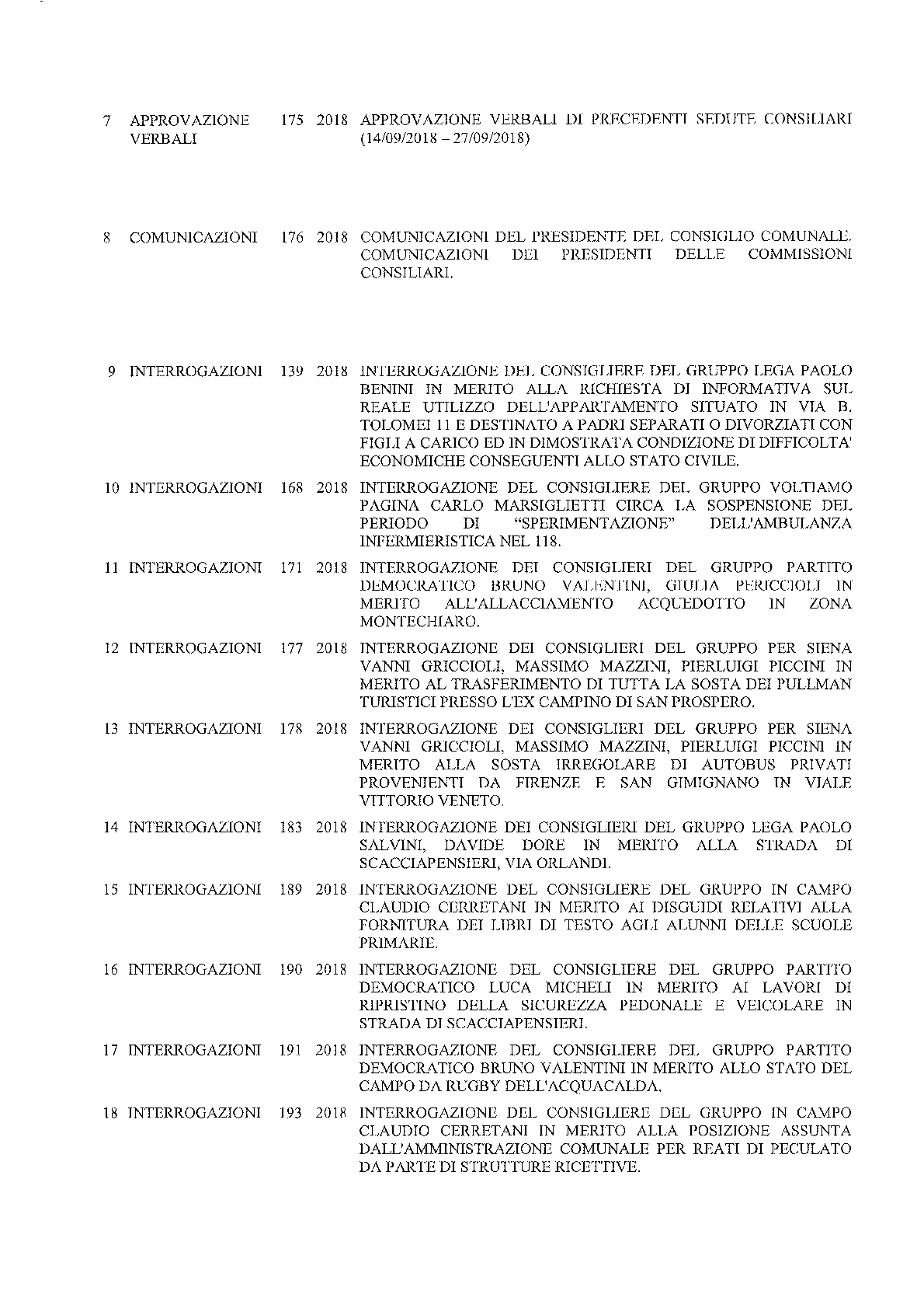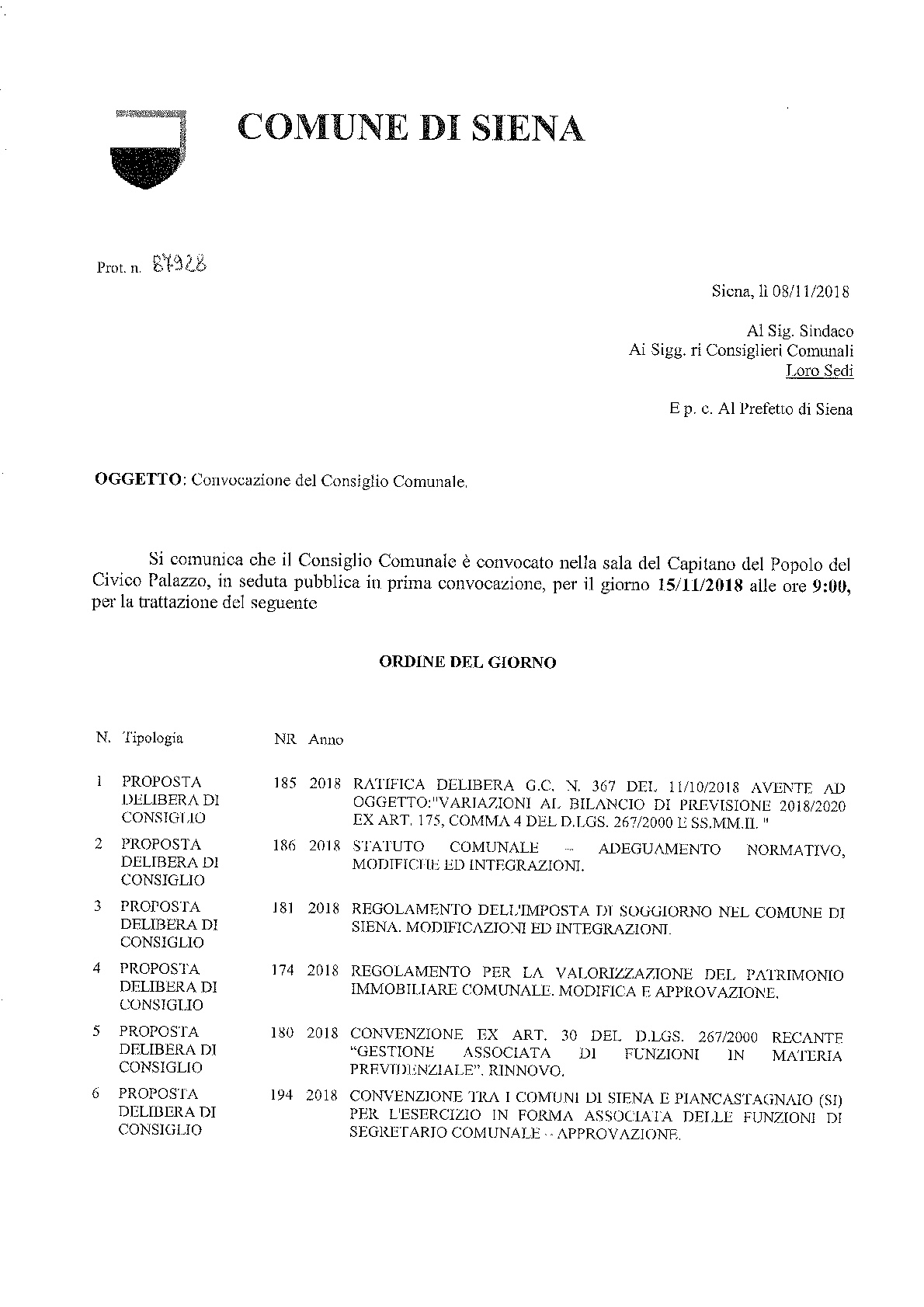 Giovedì prossimo, 15 novembre, nella Sala del Capitano del Popolo di Palazzo Pubblico si terrà una seduta del Consiglio Comunale, con inizio alle ore 9.