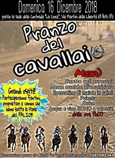 Il 16/12 si svolgerà Il pranzo dei Cavallai, presso la sede della Contrada La Croce in Via martiri della Libertà 69 a Buti ( PI )