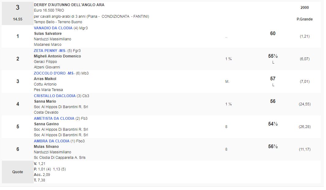 3^ Corsa Derby D’Autunno dell’Anglo-Arabo-Arabo vinta da Vanadio da Clodia