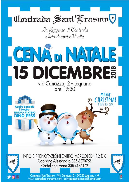 Palio di Legnano, Contrada Sant’Erasmo: 15/12 “Cena di Natale” “Cena di Natale” presso il Maniero di Via Canazza 2, Sabato 15/12 dalle ore 19:30. Per info e partecipare guardare la locandina sotto Condividi sul web: Fai clic per condividere su Facebook (Si apre in una nuova finestra) Facebook Fai clic per condividere su WhatsApp (Si apre in una nuova finestra) WhatsApp Fai clic per condividere su Telegram (Si apre in una nuova finestra) Telegram Fai clic per condividere su X (Si apre in una nuova finestra) X Fai clic qui per stampare (Si apre in una nuova finestra) Stampa Fai clic per inviare un link a un amico via e-mail (Si apre in una nuova finestra) E-mail Mi piace Caricamento... Correlati