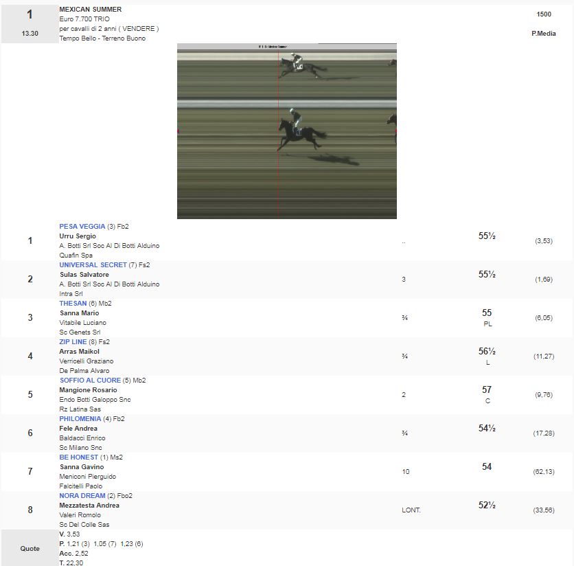 1^ Corsa, Premio Mexican Summer vinta da Pesa Veggia