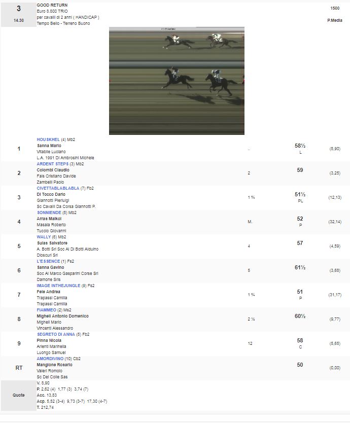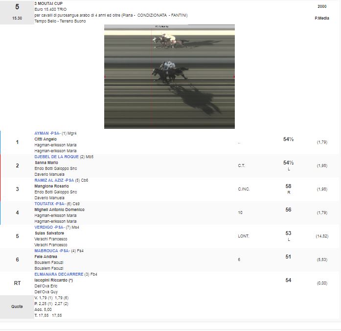 5^ Corsa Premio S Moutai Coup vinta da Ayman PSA