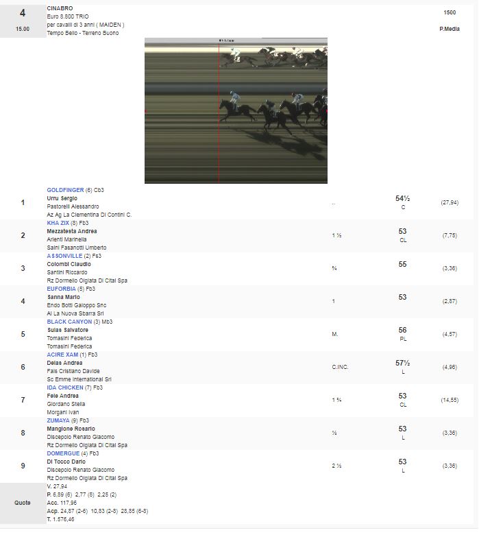 4^ Corsa Premio Cinabro vinta da Goldfinger