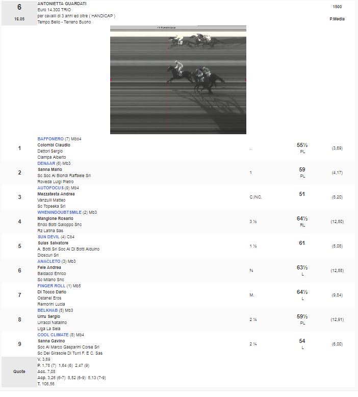 6^ Corsa Premio Antonietta Guardati vinta da Baffo Nero