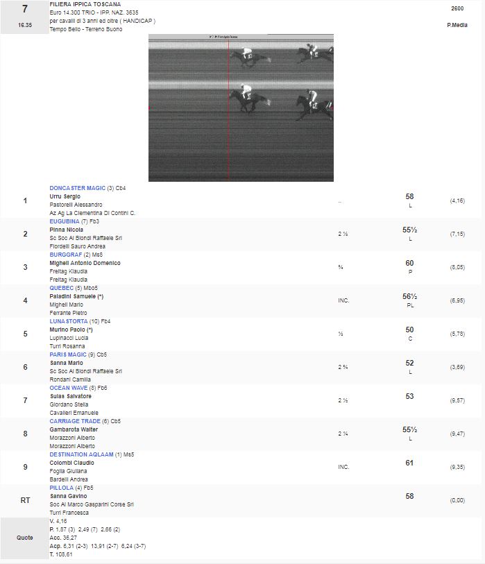 7^ Corsa Premio Filiera Ippica Toscana vinta da Doncaster Magic