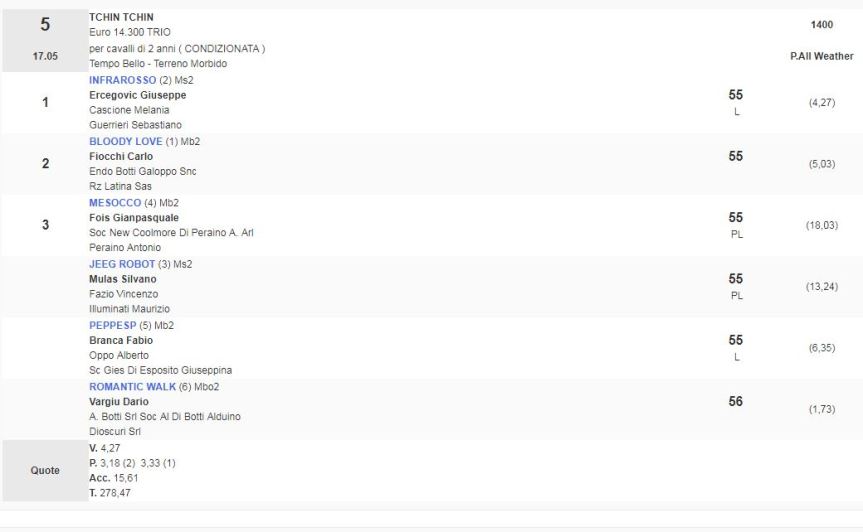 Ippica, Roma: Oggi 18/11 Risultati 4^ e 5^ Corsa, Vincono Ratnaraj e Infrarosso 4^ Corsa Premio Capannelle – II Tris vinta da Ratnaraj 5^ Corsa Premio Tchin Tchin vinta da Infrarosso Condividi sul web: Fai clic per condividere su Facebook (Si apre in una nuova finestra) Facebook Fai clic per condividere su WhatsApp (Si apre in una nuova finestra) WhatsApp Fai clic per condividere su Telegram (Si apre in una nuova finestra) Telegram Fai clic per condividere su X (Si apre in una nuova finestra) X Fai clic qui per stampare (Si apre in una nuova finestra) Stampa Fai clic per inviare un link a un amico via e-mail (Si apre in una nuova finestra) E-mail Mi piace Caricamento... Correlati