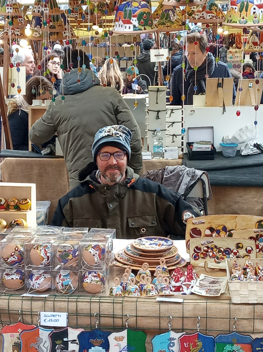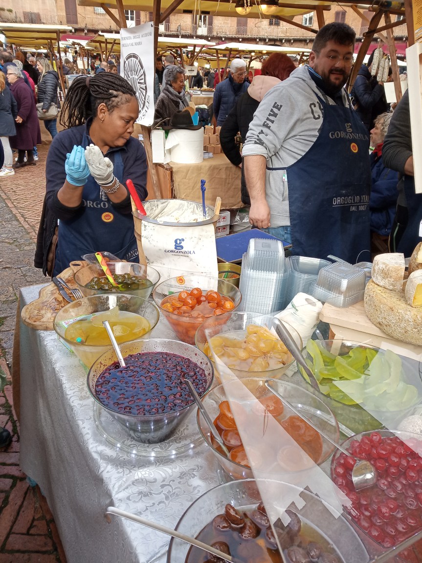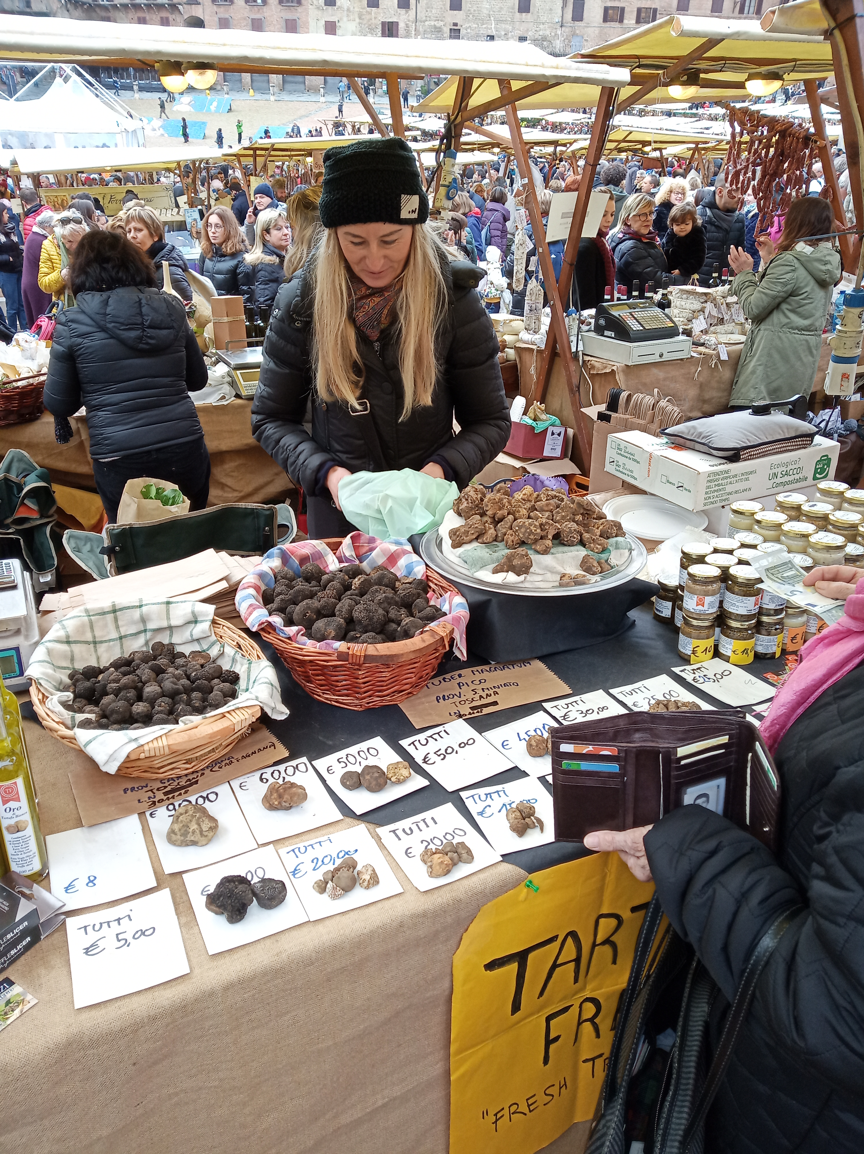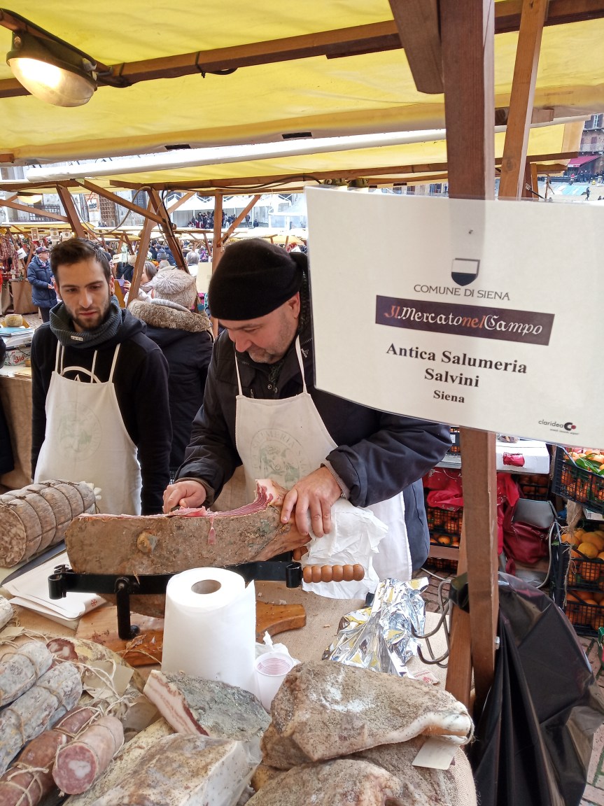 Siena: Massi lo Sá a giro per i banchi del Mercato nel Campo