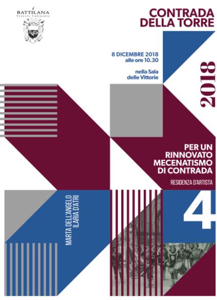 Domani 08/12 alle ore 10.30 nella Sala delle Vittorie Presentazione delle opere “Per un rinnovato Mecenatismo di Contrada 2018” IV edizione. Le due artiste Ilaria D’Atri e Marta Dell’Angelo consegneranno alla Contrada le opere prodotte dopo la loro residenza durante il Palio di Agosto.