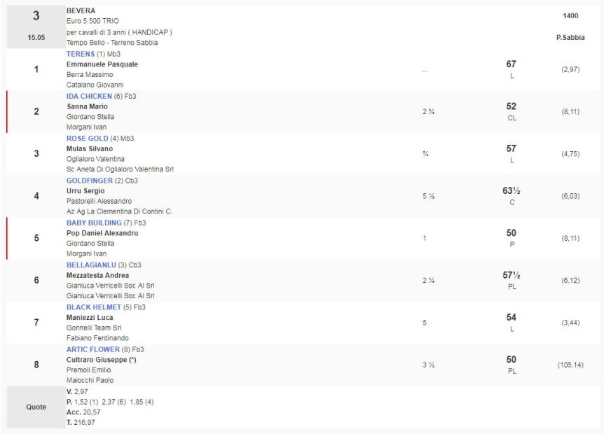 3^ Corsa Premio Bevera vinta da Terens
