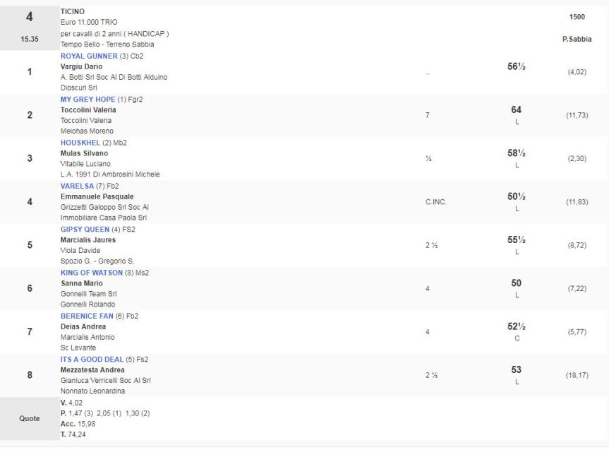 4^ Corsa Premio Ticino vinta da Royal Gunner