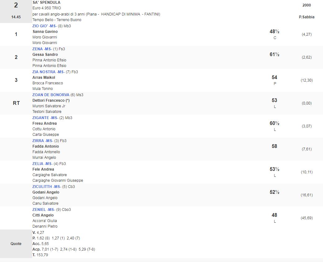 2^ Corsa Premio Sa’ Spendula vinta da Zio Gio’ da Vidoc III e Isterica de S’ena