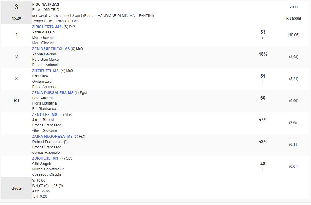 3^ Corsa Premio Piscina Irgas vinta da Zirigherta da Oscar Dey e Dhemhetra