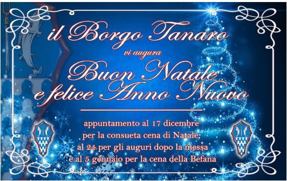 - 24 Dicembre dopo la Messa presso il Salone festeggiamenti attenderemo tutta la popolazione Tanarina per la distribuzione del panettone cioccolata calda e Vin Brulè (quest’ultimo a cura del Gruppo Alpini Ponte Tanaro)