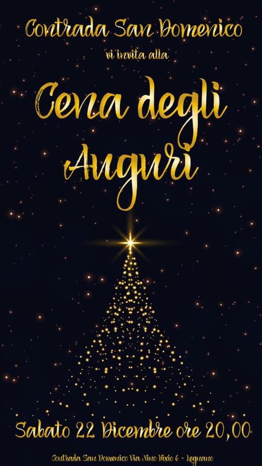 Sabato 22 dicembre presso il Maniero di Via Nino Bixio 6, la Contrada San Domenico organizza la tradizionale “Cena degli Auguri”.