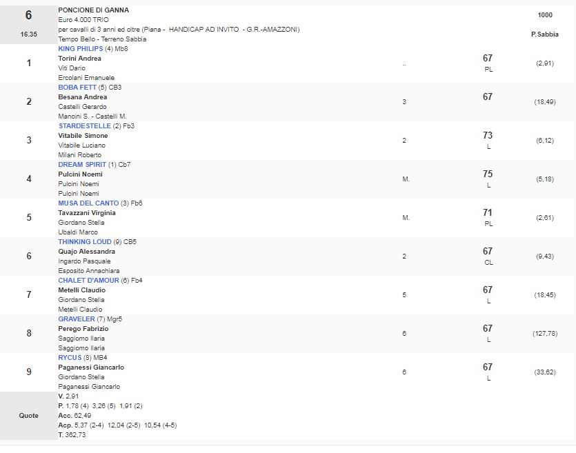 Ippica, Varese: Oggi 15/12 Risultati 4^, 5^ e 6^ Corsa Vincono Willow Creek, Americansim e King Philips 4^ Corsa Premio Cuvignone vinta da Willow Creek 5^ Corsa premio Brusimpiano – Ardena vinta da Americanism 6^ Corsa Premio Poncione di Gianna vinta da King Philips Condividi sul web: Fai clic per condividere su Facebook (Si apre in una nuova finestra) Facebook Fai clic per condividere su WhatsApp (Si apre in una nuova finestra) WhatsApp Fai clic per condividere su Telegram (Si apre in una nuova finestra) Telegram Fai clic per condividere su X (Si apre in una nuova finestra) X Fai clic qui per stampare (Si apre in una nuova finestra) Stampa Fai clic per inviare un link a un amico via e-mail (Si apre in una nuova finestra) E-mail Mi piace Caricamento... Correlati
