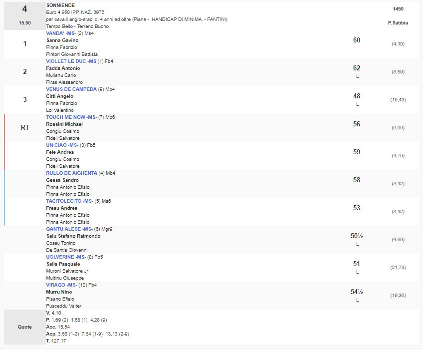 4^ Corsa Premio Sonniende vinta da Vandà da Ispanico Sauro e Nevadia