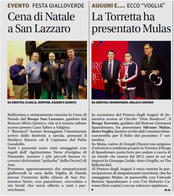 Palio di Asti: Articoli sul Palio inserto “La Mossa” di oggi 18/12 de “la Nuova Provincia” edizione di Asti Ricevo e pubblico: “Ecco gli articoli de “La Nuova Provincia” edizione Asti di oggi 18/12 sul palio di Asti” Condividi sul web: Condividi su Facebook (Si apre in una nuova finestra) Facebook Condividi su WhatsApp (Si apre in una nuova finestra) WhatsApp Condividi su Telegram (Si apre in una nuova finestra) Telegram Condividi su X (Si apre in una nuova finestra) X Stampa (Si apre in una nuova finestra) Stampa Invia un link a un amico via e-mail (Si apre in una nuova finestra) E-mail Mi piace Caricamento... Correlati
