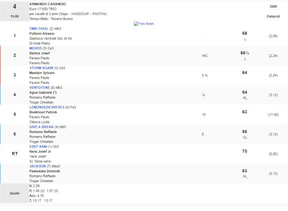 Ippica, Pisa: Oggi 20/12 Risultati 1^, 2^ e 4^ Corsa Vincono Padrinho, Mezajy e Time Fatal 1^ Corsa Premio Ilai Picchi vinta da Padrinho 2^ Corsa Premio Leap Year vinta da Mezajy 4^ Corsa Premio Armando Carangio vinta da Time Fatal Condividi sul web: Fai clic per condividere su Facebook (Si apre in una nuova finestra) Facebook Fai clic per condividere su WhatsApp (Si apre in una nuova finestra) WhatsApp Fai clic per condividere su Telegram (Si apre in una nuova finestra) Telegram Fai clic per condividere su X (Si apre in una nuova finestra) X Fai clic qui per stampare (Si apre in una nuova finestra) Stampa Fai clic per inviare un link a un amico via e-mail (Si apre in una nuova finestra) E-mail Mi piace Caricamento... Correlati