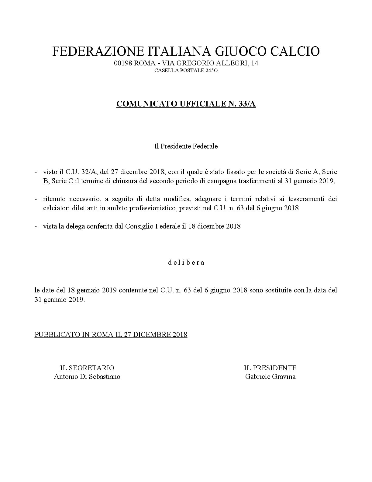 Calcio, F.I.G.C., Ufficiale: Prorogata al 31/01/2018 la chiusura del Calciomercato Invernale Stagione 2018-2019 E’ stata prorogata al 31/01/2018 il termine della chiusura del calciomercato invernale 2018-2019. Condividi sul web: Fai clic per condividere su Facebook (Si apre in una nuova finestra) Facebook Fai clic per condividere su WhatsApp (Si apre in una nuova finestra) WhatsApp Fai clic per condividere su Telegram (Si apre in una nuova finestra) Telegram Fai clic per condividere su X (Si apre in una nuova finestra) X Fai clic qui per stampare (Si apre in una nuova finestra) Stampa Fai clic per inviare un link a un amico via e-mail (Si apre in una nuova finestra) E-mail Mi piace Caricamento... Correlati