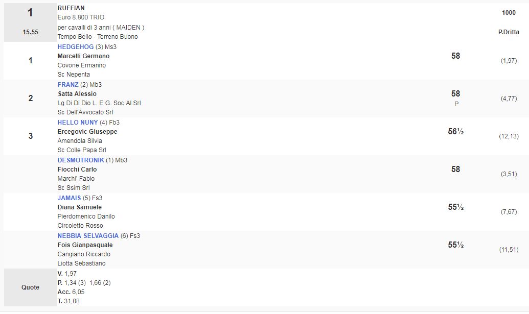 1^ Corsa Premio Ruffian vinta da Hedgehog