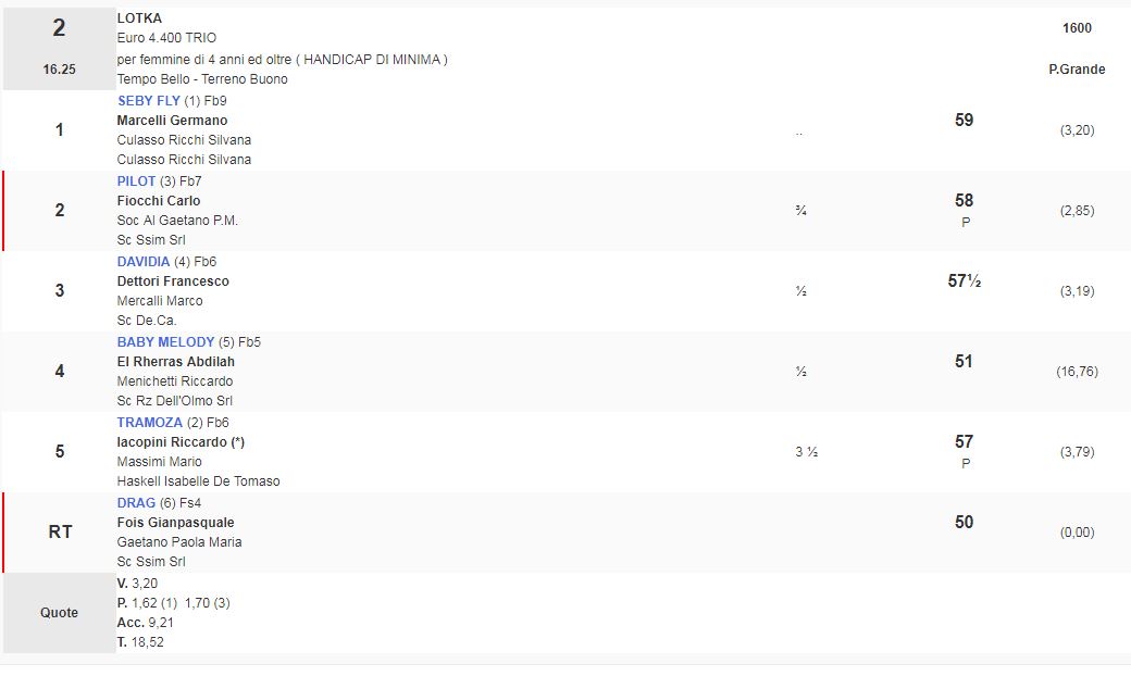 2^ Corsa Premio Lotka vinta da Seby Fly