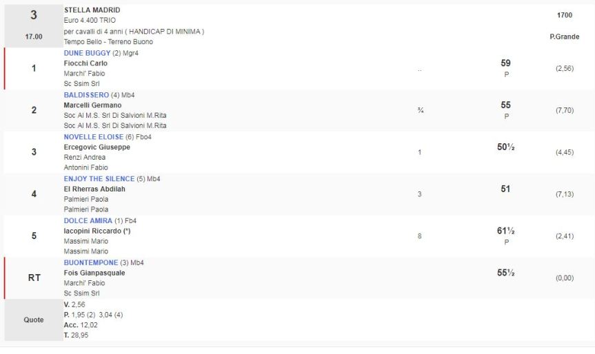 Ippica, Napoli: Oggi 02/01 Risultati 3^ e 4^ Corsa Vincono Dune Buggy e Sopran Maleyf 3^ Corsa Premio Stella Madrid vinta da Dune Buggy 4^ Corsa Premio Carina mia vinta da Sopran Maleyf Condividi sul web: Fai clic per condividere su Facebook (Si apre in una nuova finestra) Facebook Fai clic per condividere su WhatsApp (Si apre in una nuova finestra) WhatsApp Fai clic per condividere su Telegram (Si apre in una nuova finestra) Telegram Fai clic per condividere su X (Si apre in una nuova finestra) X Fai clic qui per stampare (Si apre in una nuova finestra) Stampa Fai clic per inviare un link a un amico via e-mail (Si apre in una nuova finestra) E-mail Mi piace Caricamento... Correlati
