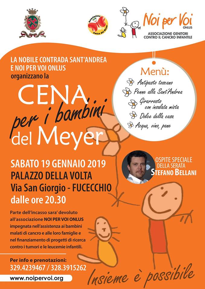 Come ogni anno la nostra Contrada organizza, insieme all’Associazione Noi per Voi Onlus, una cena il cui ricavato servirà per finanziare progetti di ricerca contro tumori e leucemie infantili.