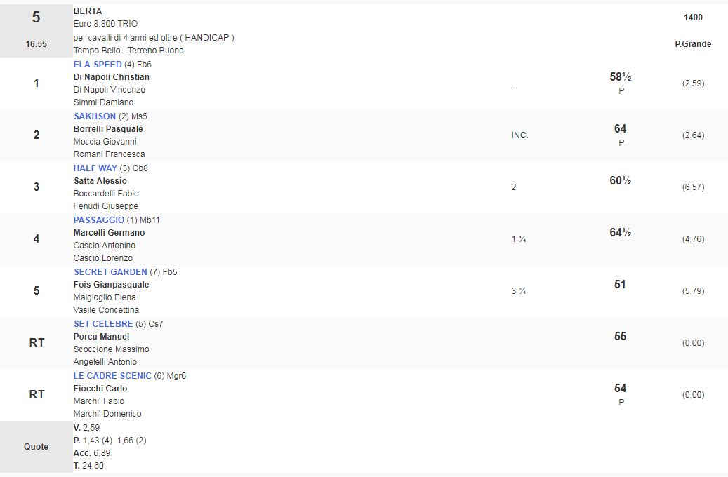 Ippica, Napoli: Oggi 05/01 Risultati 5^ e 6^ Corsa Vincono Ela Speed e Beautiful Fast 5^ Corsa Premio Berta vinta da Ela Speed 6^ Corsa Premio Don Bartolo vinta da Beautiful Fast Condividi sul web: Fai clic per condividere su Facebook (Si apre in una nuova finestra) Facebook Fai clic per condividere su WhatsApp (Si apre in una nuova finestra) WhatsApp Fai clic per condividere su Telegram (Si apre in una nuova finestra) Telegram Fai clic per condividere su X (Si apre in una nuova finestra) X Fai clic qui per stampare (Si apre in una nuova finestra) Stampa Fai clic per inviare un link a un amico via e-mail (Si apre in una nuova finestra) E-mail Mi piace Caricamento... Correlati