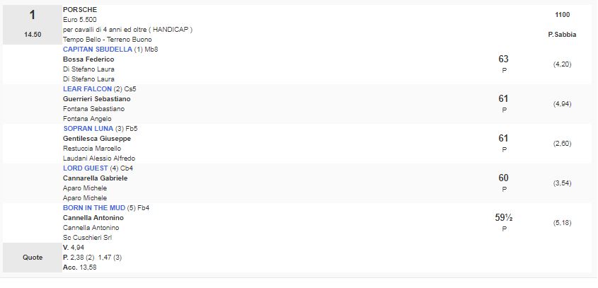 Ippica, Siracusa: Oggi 06/01 Risultati 1^ e 2^ Corsa Vincono Lear Falcon e Ace to Pesca 1^ Corsa Premio Porsche vinta da Lear Falcon 2^ Corsa Premio Lamborghini vinta da Ace to Pesca Condividi sul web: Fai clic per condividere su Facebook (Si apre in una nuova finestra) Facebook Fai clic per condividere su WhatsApp (Si apre in una nuova finestra) WhatsApp Fai clic per condividere su Telegram (Si apre in una nuova finestra) Telegram Fai clic per condividere su X (Si apre in una nuova finestra) X Fai clic qui per stampare (Si apre in una nuova finestra) Stampa Fai clic per inviare un link a un amico via e-mail (Si apre in una nuova finestra) E-mail Mi piace Caricamento... Correlati