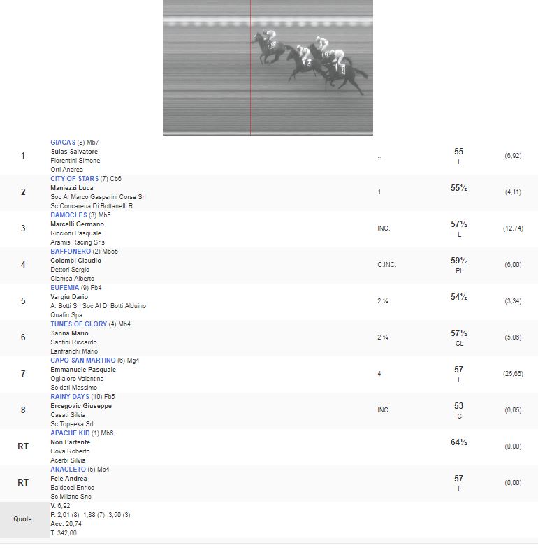 5^ Corsa Premio Jacopo Barchelli vinta da Giacas