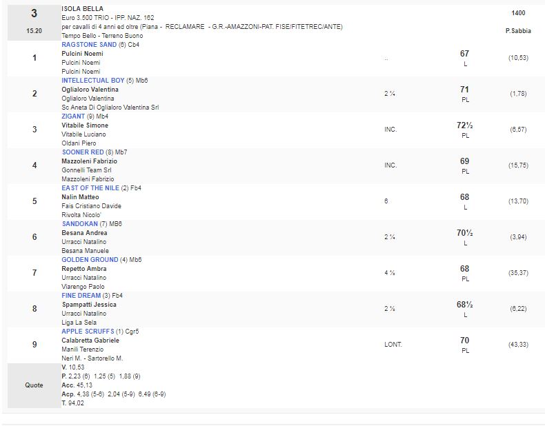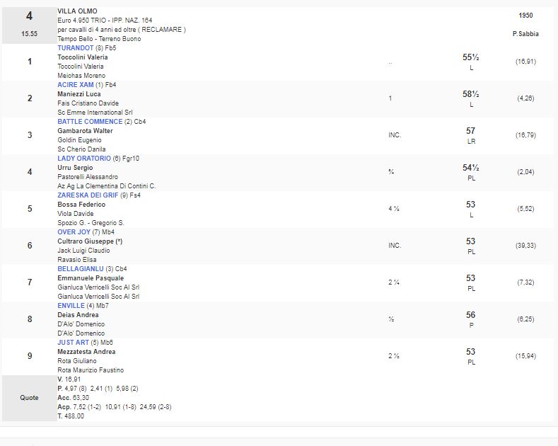 Ippica, Varese: Oggi 16/01 Risultati 3^ e 4^ Corsa Vincono Ragstone Sand e Turandot 3^ Corsa Premio Isola Bella vinta da Ragstone Sand 4^ Corsa Premio Villa Olmo vita da Turandot Condividi sul web: Fai clic per condividere su Facebook (Si apre in una nuova finestra) Facebook Fai clic per condividere su WhatsApp (Si apre in una nuova finestra) WhatsApp Fai clic per condividere su Telegram (Si apre in una nuova finestra) Telegram Fai clic per condividere su X (Si apre in una nuova finestra) X Fai clic qui per stampare (Si apre in una nuova finestra) Stampa Fai clic per inviare un link a un amico via e-mail (Si apre in una nuova finestra) E-mail Mi piace Caricamento... Correlati