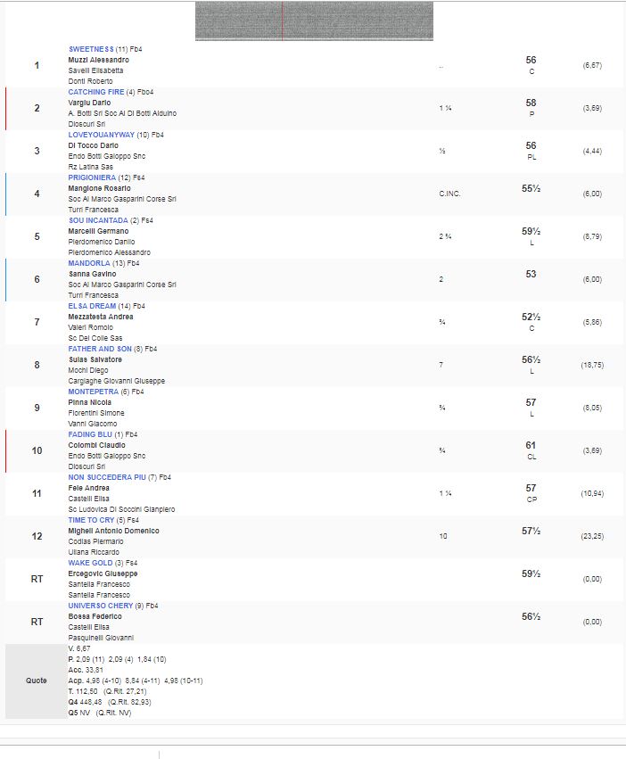 6^ Corsa Premio Calci vinta da Sweetness