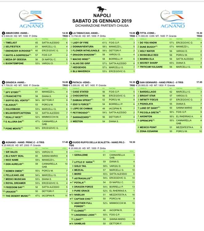 Ecco i partenti delle corse di Domani 26/01