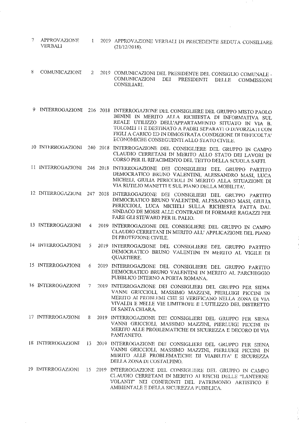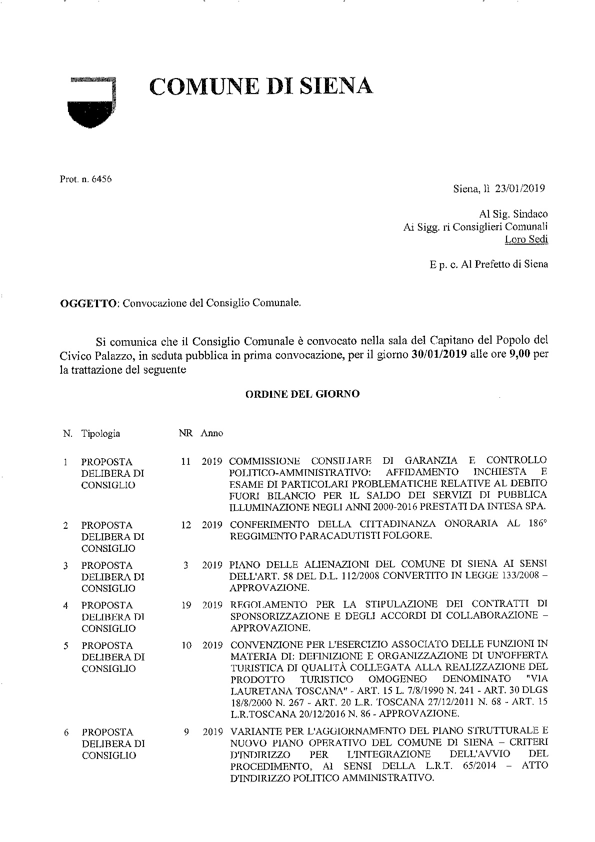 Mercoledì 30 gennaio si terrà la prossima seduta del Consiglio Comunale, nella Sala del Capitano del Popolo di Palazzo Pubblico, con inizio alle ore 9.