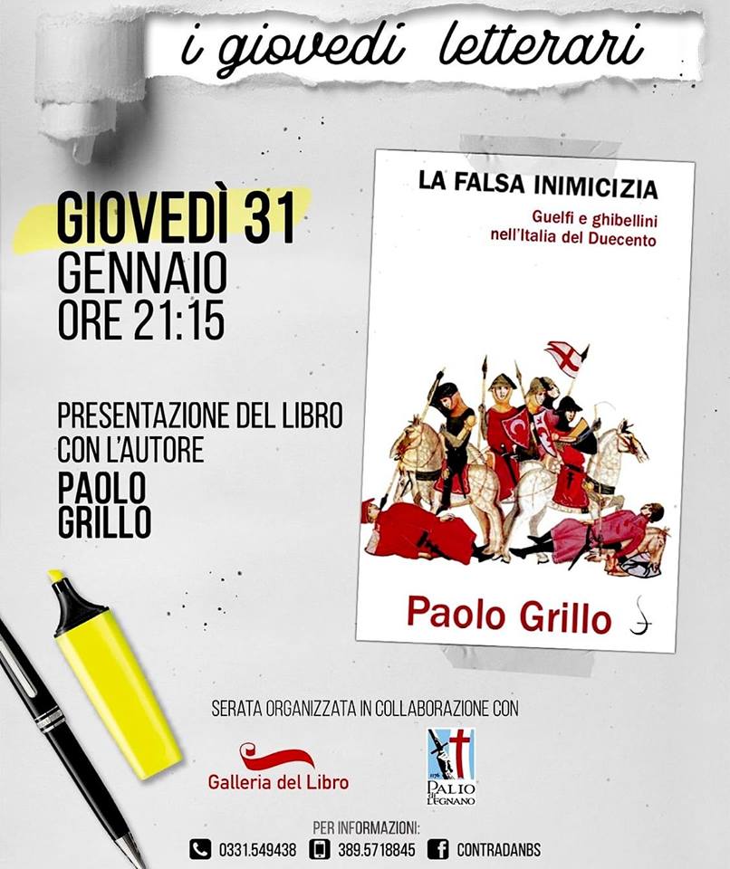 Giovedì 31 Gennaio ore 21.15 ospite il Professor Paolo Grillo per la presentazione del libro “La falsa inimicizia: Guelfi e Ghibellini nell’Italia del Duecento” 📚