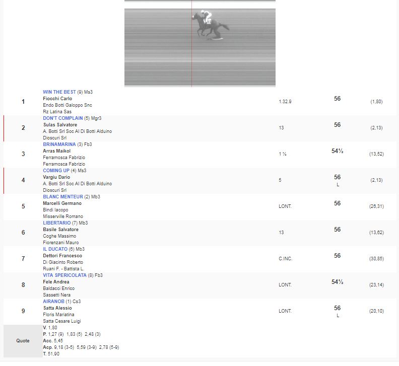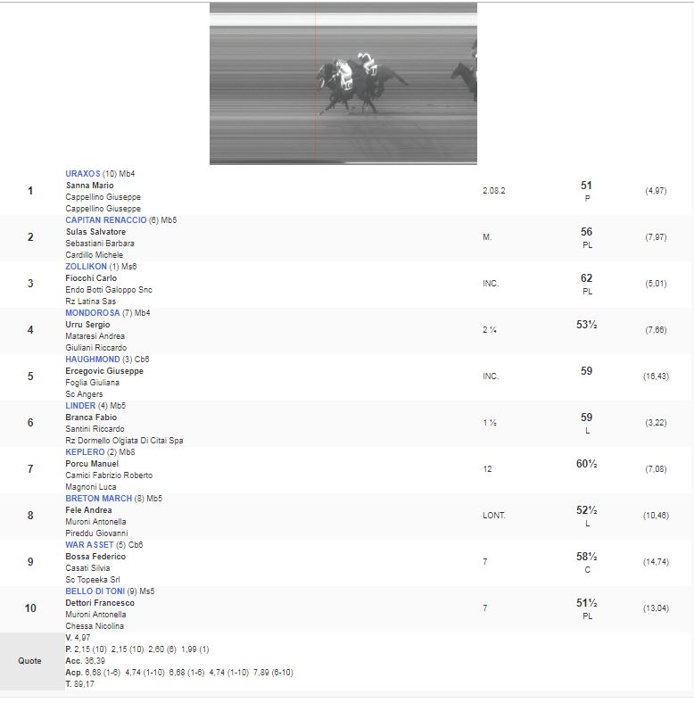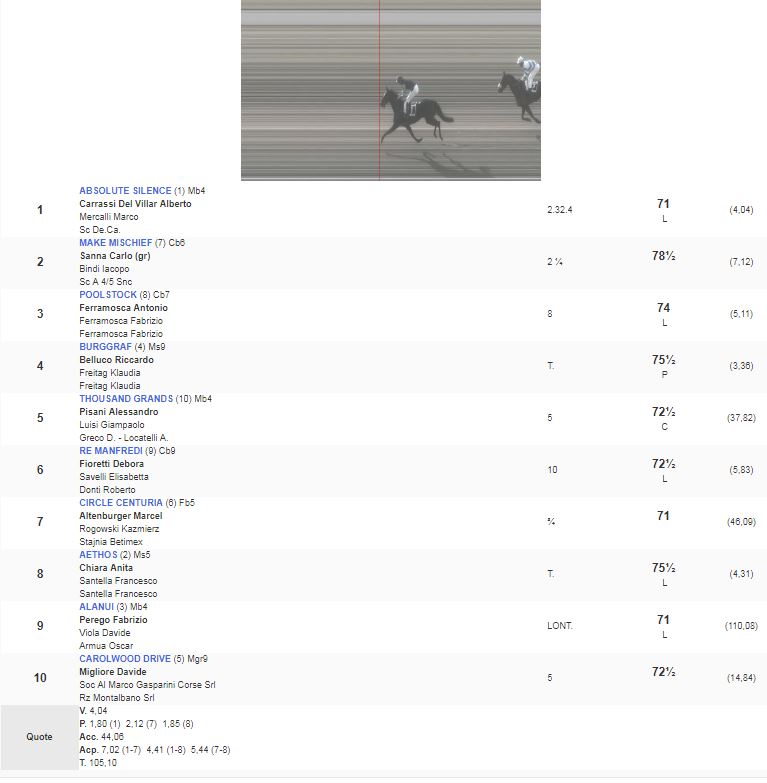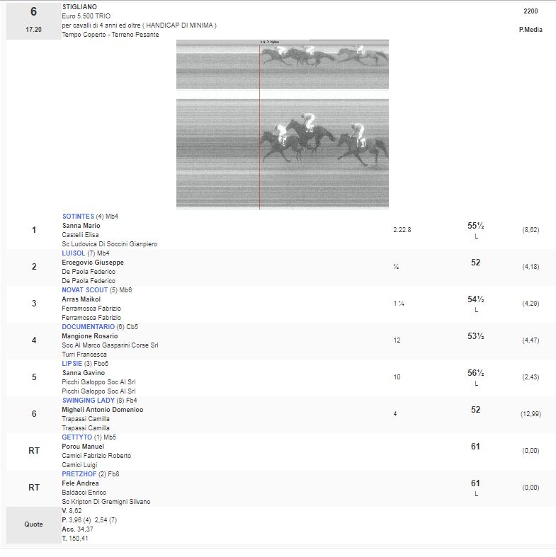 Ippica, Pisa: Oggi 03/02 Risultati Corse Odierne 1^ Corsa Premio Golden Cavern vinta da Win The Best 2^ Corsa Premio Umberto Ginghiali vinta da Fiammeo 3^ Corsa Premio Lorenzo Camuffo vinta da Absolute Silence 4^ Corsa Premio Silvio Parravani vinta da Apache Kid 5^ Corsa Premio Unione Industriale Pisana vinta da Uraxos 6^ Corsa Premio Stigliano vinta da Sotintes Condividi sul web: Fai clic per condividere su Facebook (Si apre in una nuova finestra) Facebook Fai clic per condividere su WhatsApp (Si apre in una nuova finestra) WhatsApp Fai clic per condividere su Telegram (Si apre in una nuova finestra) Telegram Fai clic per condividere su X (Si apre in una nuova finestra) X Fai clic qui per stampare (Si apre in una nuova finestra) Stampa Fai clic per inviare un link a un amico via e-mail (Si apre in una nuova finestra) E-mail Mi piace Caricamento... Correlati