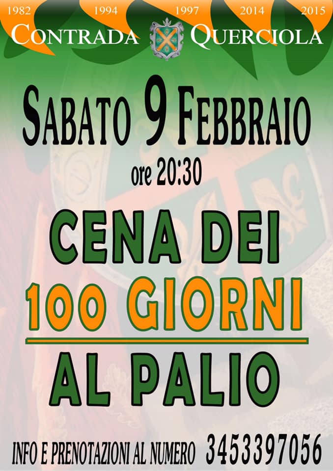 Sabato 9 febbraio, la cena dei 100 giorni aspetta NOI tutti: Piccoli e grandi contradaioli!