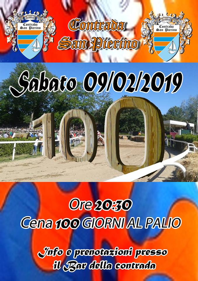 Sabato 9 Febbraio, in occasione dei 100 Giorni al Palio, la Contrada San Pierino organizza la consueta cena che c’introduce nel periodo più caldo dell’anno.
