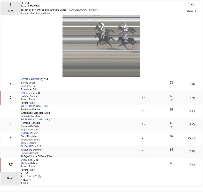1^ Corsa Premio Feltre vinta da Notti Magiche