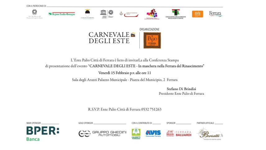 Palio di Ferrara: 15/02 Invito Conferenza Stampa Carnevale degli Estensi 2019