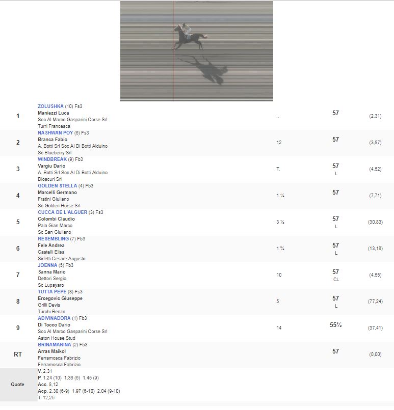 5^ Corsa Premio Mauro Montersoli vinta da Zolushka