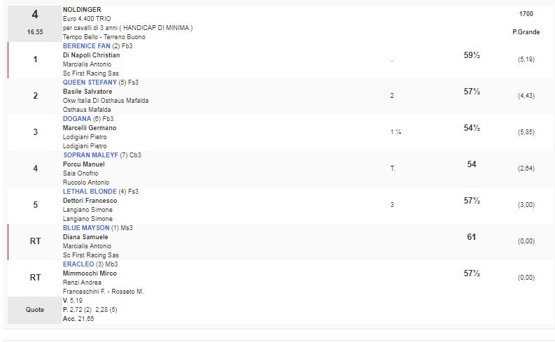 4^ Corsa Premio Noldinger vinta da Berenice Fan