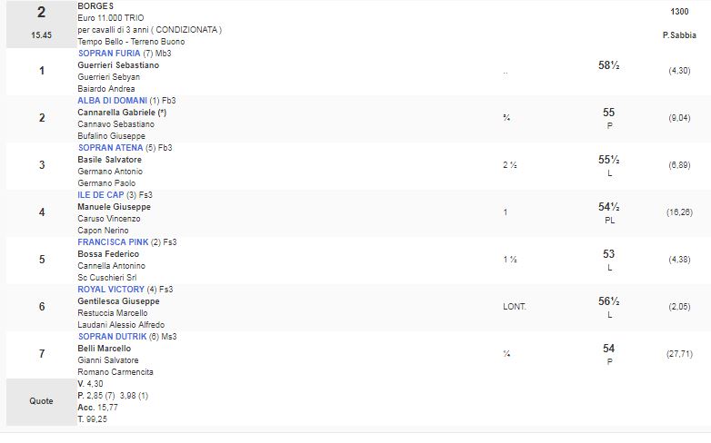 Ippica, Siracusa: Oggi 16/02 Risultati 1^ e 2^ Corsa Vincono Fiorex e Sopran Furia 1^ Corsa Premio Roman Elsie vinta da Fiorex 2^ Corsa Premio Borges vinta da Sopran Furia Condividi sul web: Fai clic per condividere su Facebook (Si apre in una nuova finestra) Facebook Fai clic per condividere su WhatsApp (Si apre in una nuova finestra) WhatsApp Fai clic per condividere su Telegram (Si apre in una nuova finestra) Telegram Fai clic per condividere su X (Si apre in una nuova finestra) X Fai clic qui per stampare (Si apre in una nuova finestra) Stampa Fai clic per inviare un link a un amico via e-mail (Si apre in una nuova finestra) E-mail Mi piace Caricamento... Correlati