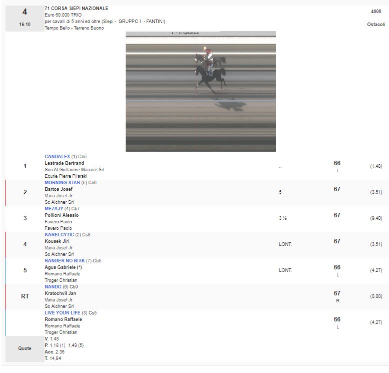 4^ Corsa Premio 71 Corsa Siepi Nazionale vinta da Candalex