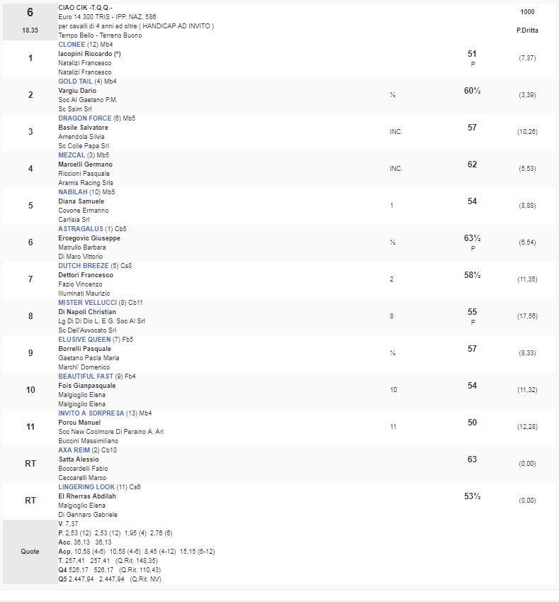 6^ Corsa Premio Ciao Cik – T.Q.Q. – vinta da Clonee